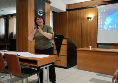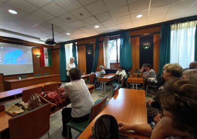 Szóval, ma újra a kineziológiára szavaztunk. Ez a szelíd gyógymód egy több módszert alkalmazó egészség támogatási célú rendszer, egyik ága a Touch For Health – Gyógyító érintés. Bennünket a múltkori előadás és bemutató győzött meg az egyszerűségéről, hatásosságáról. Borosné, Telek Valika, klubtársunk kérésünkre vállalkozott rá, hogy tart nekünk egy – szó szerint is – felfrissítő tréninget. Megkérte szakértő társát is, hogy kísérje el, aki elfogadta a felkérést, és ketten vállvetve álltak elébe a kihívásnak. Így párhuzamosan és felváltva folyt a szóbeli ismertetés és a gyakorlati szemléltetés, közben az erre vállalkozók tesztelésen eshettek át. Mondhatom, hogy nagy volt az érdeklődés és a siker is.