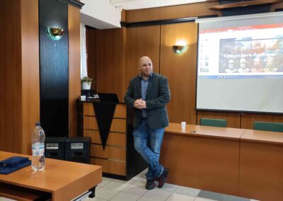 Az első előadó, Dr Grósz Péter, aki régi jó ismerősünk – már, ha ilyet kijelenthetünk a nagyon fiatal jogász kollégáról – szólásra készen várakozott. A téma elsőre rágósnak ígérkezett. Ugyanis ”A görög-perzsa háborúkról és azok örök érvényű tanulságairól” lesz szó. Csendben bíztunk benne, hogy most nem a kikérdezés jön, hiszen ezzel a témával Péter már bombázott bennünket. De megkönnyebbülésünkre, nem! Egyrészt nagyon jól jött az ismétlés, másrészt ez a téma annyi megközelítésből tárgyalható, máshova kerülhetnek a hangsúlyok, és főleg, ilyen időtávlatból már senki nem sértődik meg, ha az előadó széles eszköztárából előkerül a humor. Merthogy így is történt. Bele is vágtunk! Egy háború elnevezésében elől szerepel a támadó, utána az elszenvedő neve. De itt még ez sem ilyen egyértelmű. Aztán a háborúk általában terület megszerzéséért folynak, a felek jól elkülöníthető területet birtokolnak. A perzsák még csak-csak, de a görögök mindenhol voltak. És itt meg is állnék, inkább nem megyek bele. Nem is tudnék. De, az örökérvényű tanulságok megtárgyalására már nem maradt idő…