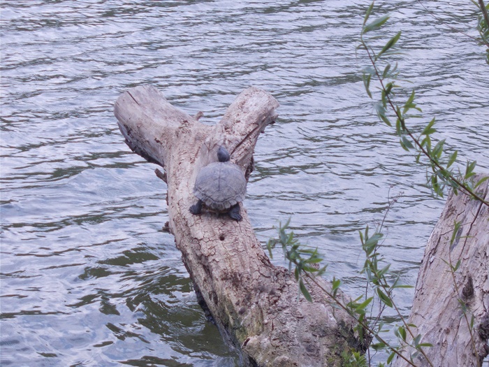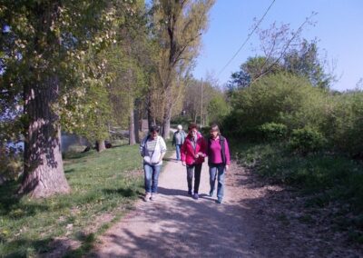 A kora délutáni órákban hagytuk el a „tetthelyet”, egy levezető gyalogtúrával jutottunk el a helyijárat megállójához. Közben hallgattuk a madarak énekét, horgászpraktikákkal ismerkedtünk, csodáltuk az ébredő természet növényvilágát, no meg az állatvilágát: halakat, egy túlméretezett ékszerteknőst és megtapasztalhattuk a hódok kártevését is.