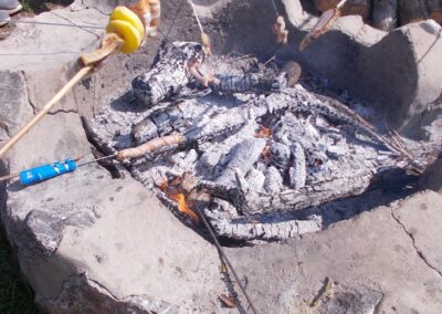 Herczné Horváth Zsuzsi ötletére desszertként mályvacukrot sütöttünk, amelynek fogyasztása még külön vidám perceket szerzett csapatunknak. Megállapítottuk, hogy egyre ügyesebben készítjük a kis tábori édességet.