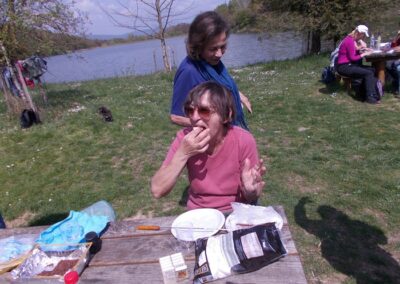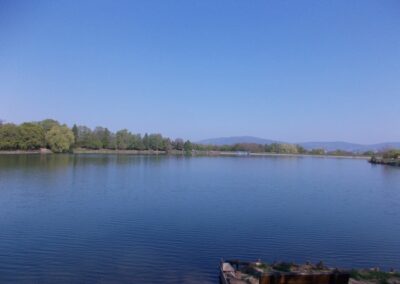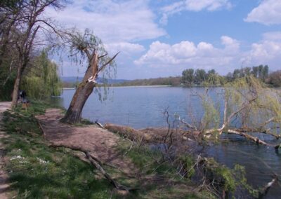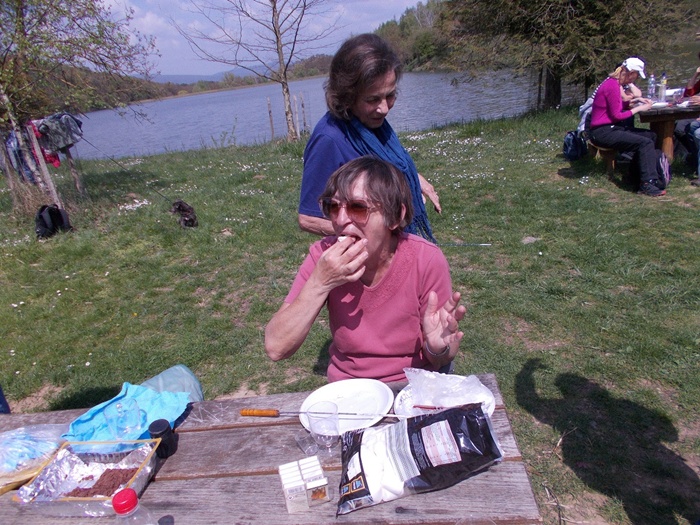 A tóparton szép számban voltak látogatók, az egyik pécsi középiskola is ide szervezett programot, de szerencsére akadt számunkra is egy kis félsziget, ahol letelepedhettünk és berendezkedhettünk. Jókedvünket beárnyékolta, hogy túránk elején egyik klubtársunk rosszul lett, akihez mentőt kellett hívni, és a sürgősségin töltötte a napot.