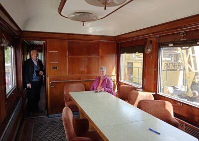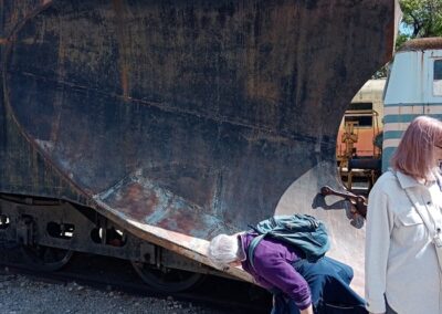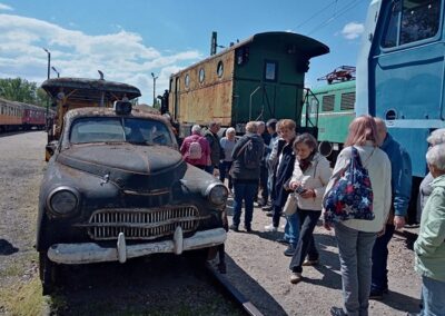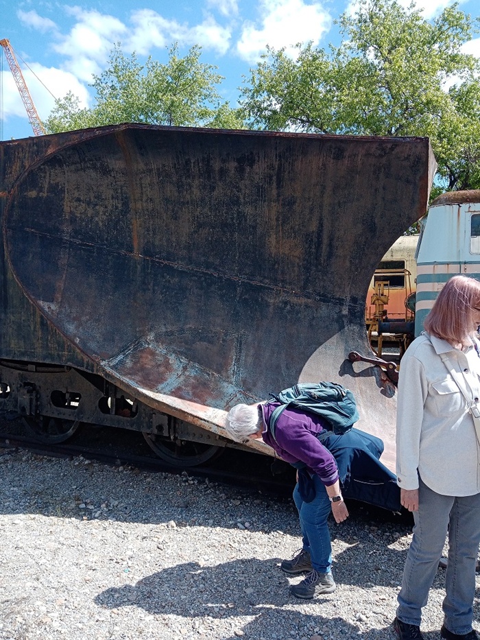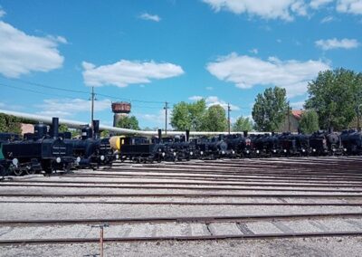 Látogatásunk során idegenvezetőnk tájékoztatott a parkról, a vasút múltjáról és jelenéről. Megtekinthettük a fordítókorongnál csatarendbe állított hatalmas gőzmozdonyokat az 1800-as évektől, sőt ki is próbálhattuk a fordítókorong működését. De láthattunk vasúti hómarót, hókotrót, sínautót, régebbi villanymozdonyokat, felújításra váró vasúti kocsikat is. Nagy élmény volt bejárni a „Hargita” névre keresztelt Rákosi- és Kádár-féle kormányvonatot.