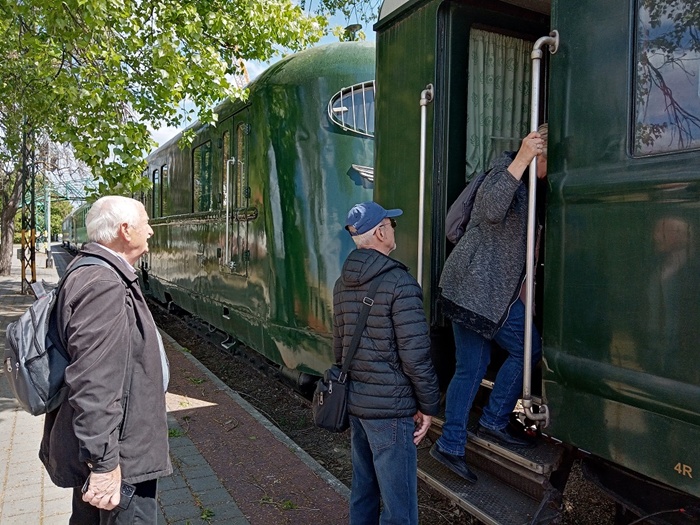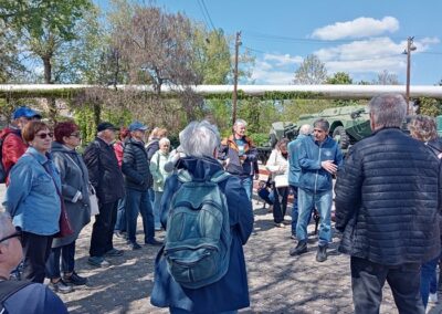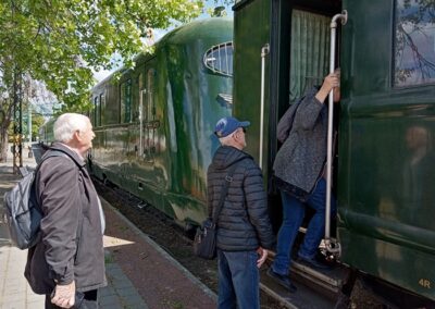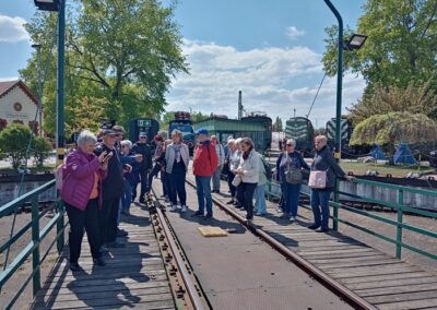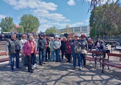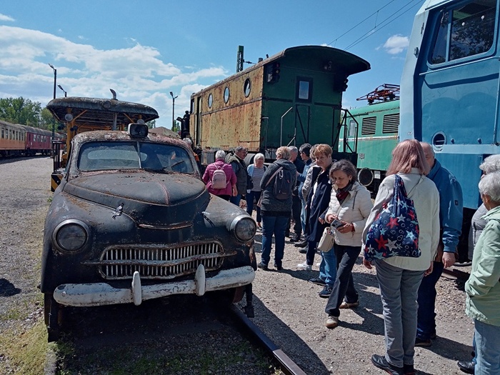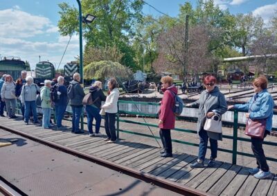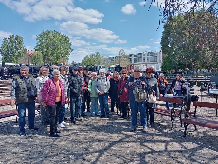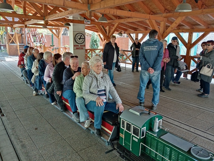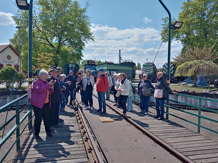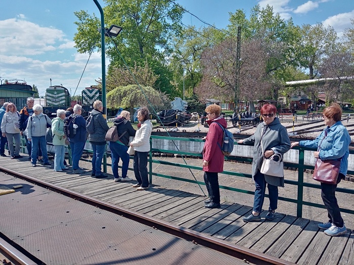 Többek kérésére ebben az évben a korábbi budapesti Aeropark- és a szolnoki Reptár-látogatás után idén a budapesti Vasúttörténeti Parkba is szervezett látogatását kultúrosunk, amelyre szép számban jelentkeztek nyugdíjastársaink. A programot stílusosan most is vonatozással kezdtük. Az időjárás kezdetben nem volt nagyon kegyes hozzánk, mert hűvös, esős reggelre ébredtünk. Ez kicsit megijesztett bennünket, hiszen a külső helyszínre tervezett program esős időben rendkívül kellemetlen lenne. Szerencsénkre azonban az esőfelhők Budapesttől távol maradtak, s a kicsit hűvösebb április napért kárpótolt minket a szervezőnk által biztosított hagyományos welcome drink.