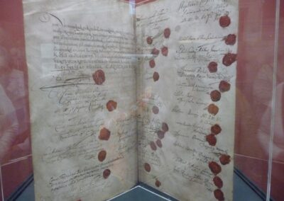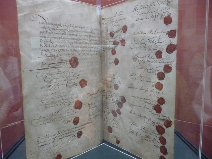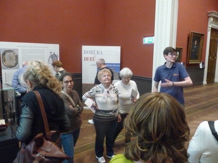 A villa megtekintése után a Magyar Tudományos Akadémiára sétáltunk el, ahol is a 200 év kincsei c. kiállítást néztük végig. A helyszínen már várt egy nagyon kedves fiatalember bennünket, aki fantasztikus tudásával és elhivatottságával vezetett végig bennünket a kiállítás alatt és mutatta be nekünk a tárlatot sokoldalú ismeretségével! Sok-sok mindent láthattunk, többek között: Egy lap a világ egyik első nyomtatott könyvéből, egy példány Hunyadi Mátyás hányatott sorsú corvinái közül, a Szózat eredeti kézirata, Petőfi és Arany csipkelődő levelezése, Radnóti Bori notesze, Kölcsey, Széchenyi és más nemzeti nagyjaink portréi: csak néhány kincs abból a gazdag gyűjteményből, amelyet a 200 éves Magyar Tudományos Akadémia most mindenki számára láthatóvá tesz megújult székházában.