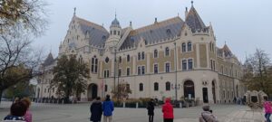 Megtekintettük a főteret körbe ölelő templomokat, épületeket, szobrokat is (Nagytemplom, Református Újkollégium, Barátok temploma, Zsinagóga stb.)