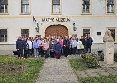A tegnapi napon (2026.04.14) MEZŐKÖVESDEN kirándultunk, megtekintettük a MATYÓFÖLD nevezetességeit. Az időjárás kegyes volt Hozzánk igazi kiránduló időben indultunk neki a napnak. Minden Résztvevő időben ott volt és így a busz már 7 óra előtt elindulhatott Velünk! A kirándulást Mezőkövesden kezdtük a Matyó múzeum megtekintésével majd némi séta Mezőkövesd központjában, felkerestük Hadas városrészt, mely egyfajta élő skanzen a városon belül. Ezután átmentünk Szomolyára, „Bükkalja kőbe vésett falujába”. Megismertük riolittufába vájt barlanglakásokat. Ezt követően felkerestünk egy fazekasműhelyt, majd egy biogazdát, aki vegyszermentes feketecseresznye termesztéssel foglalkozik.