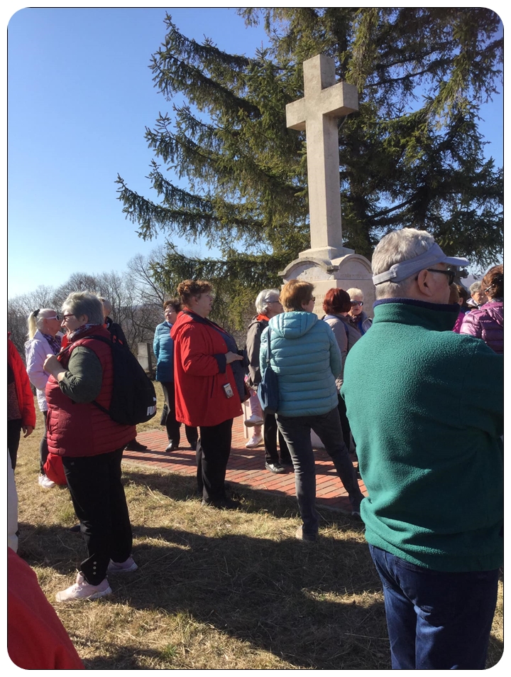 Nagyon szép kilátás nyílott a falura, szép időben Pannonhalmáig is el lehet látni. Megcsodáltuk a nyíló kökörcsint és a kikericset.